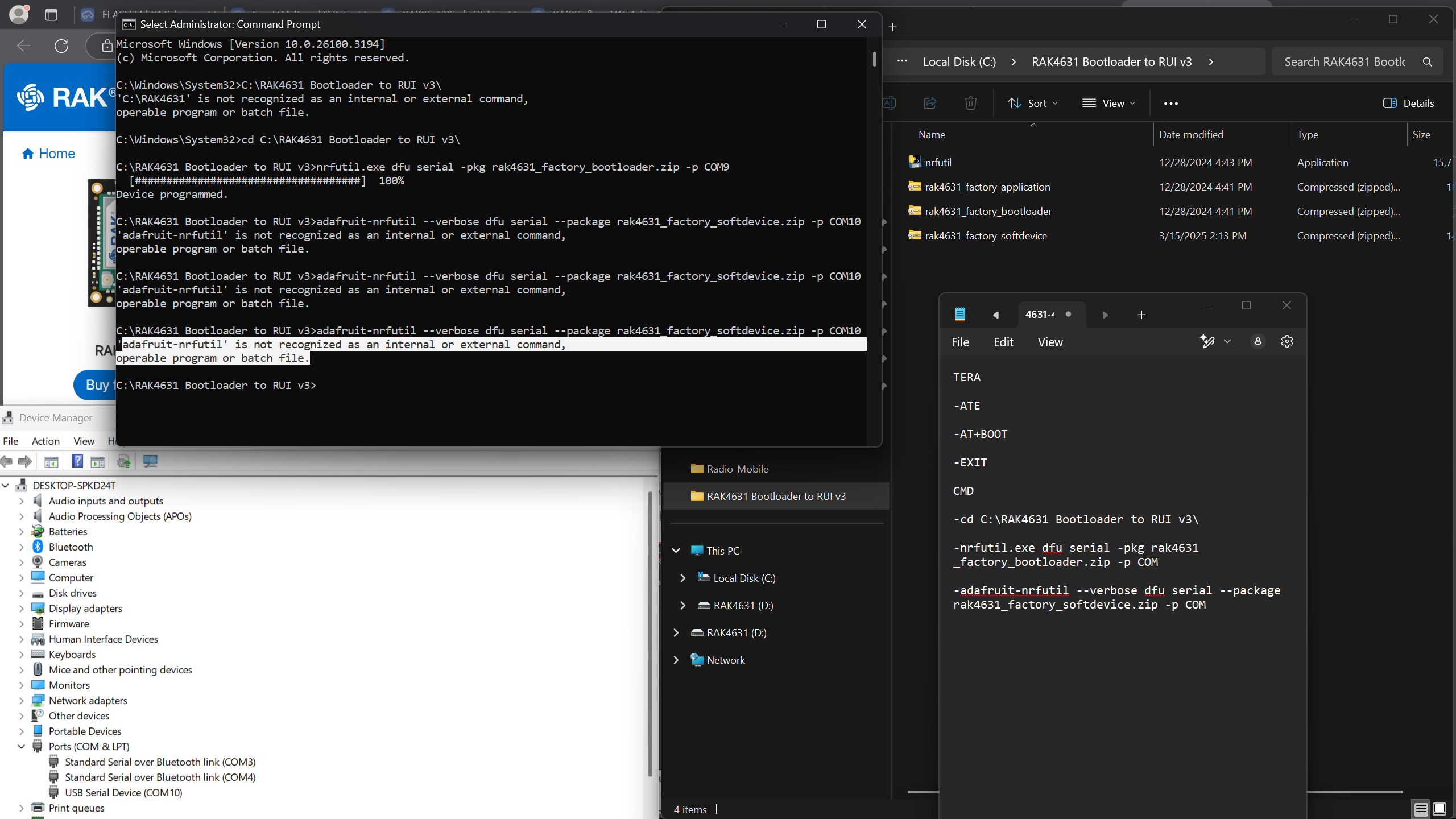 Details: i followed the rak4631R to 4631 conversion instructions to a T and they didnt work, Ive done this before a few months ago and worked just fine. Can you tell me why the commands are not working?