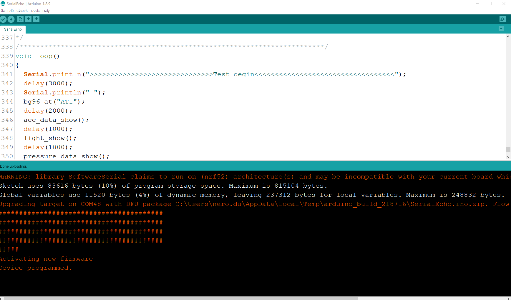 Compile and download. Ingnore the Waring: