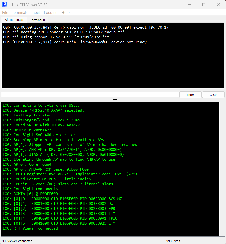 To rule out any side-effects from the firmware I tried using the spi_flash sample firmware from Zephyr, but couldn’t get very far either.