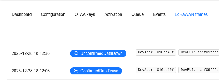 Notice how the ack packets arrived right the moment new txack was received (when a new downlink queued and sent to the gateway from chirpstack). If I don’t follow a confirmed downlink with any kind of uplink or downlink, that one message remains unconfirmed indefinitely