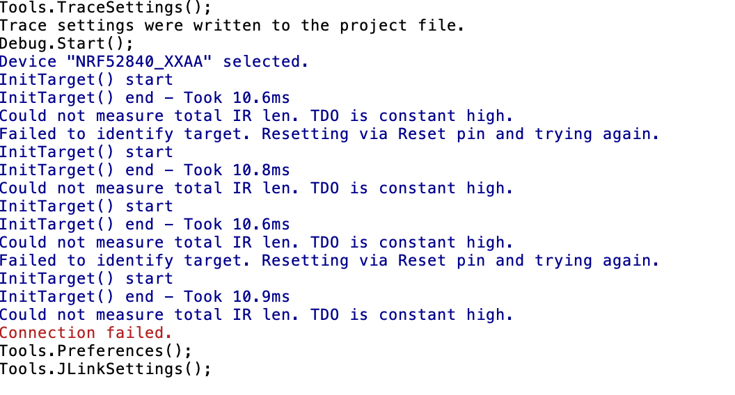 “Download and Reset”. This time around it is complaining that TDO is stuck high - which it is because the 4631 module doesn’t bring it out to the header, only SWDIO. But since TDO is only needed for trace it shouldn’t matter. I don’t recall this behaviour last time.