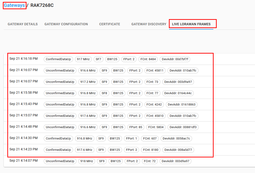 You can see as well if any packets are sent from the gateway to the LNS