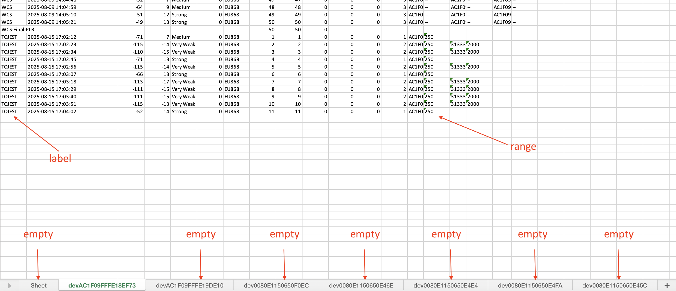 - The logging will happen for 50 times then resets to NULL. Packetloss will be calculated based on this reading. You can stop any moment on the 50 times uplink and go to a different location and tag again as necessary.