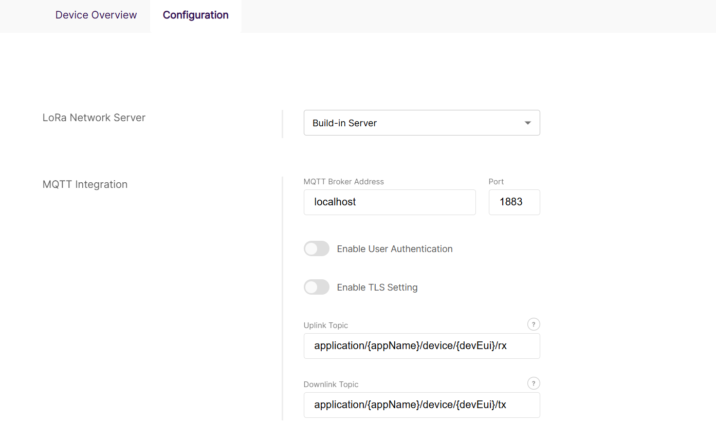 On your Configuration tab, you are using built-in LNS. Is that correct?
