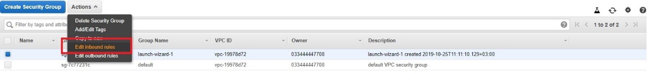 Click the “Action” button and from the drop-down menu, select “Edit Inbound Rules.”