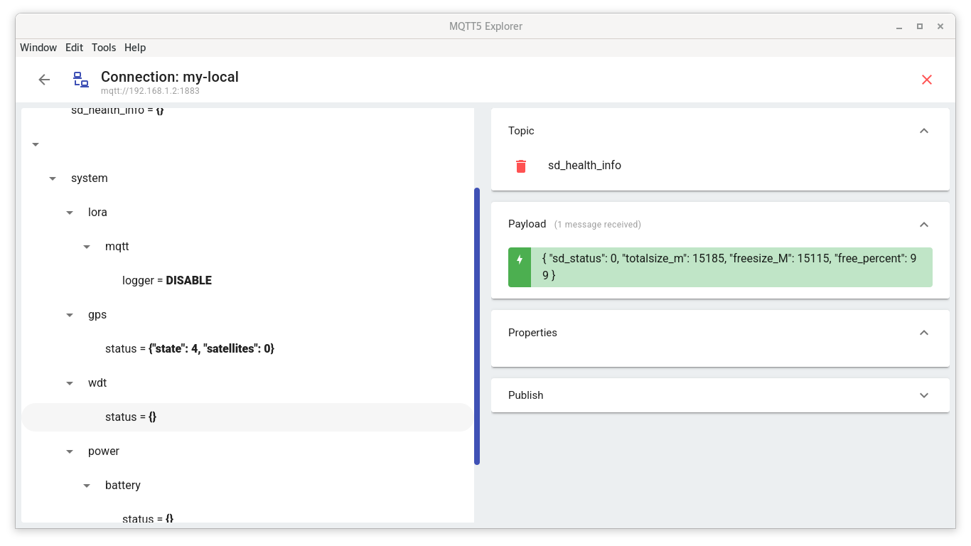 There are several limited system statuses such as GPS, WDT, power and SD health if you connect the built-in MQTT broker with MQTT5 Explorer from the root topic.