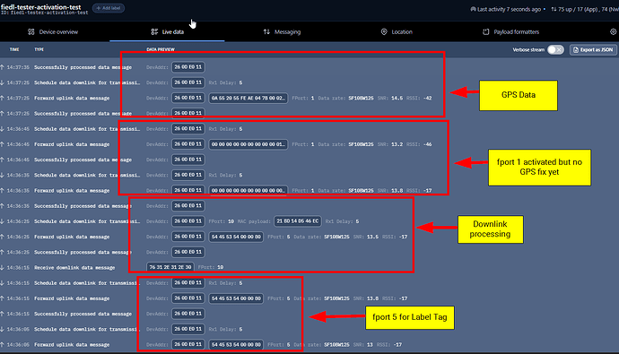 After scheduling and successfully received by the RAK10701-Plus field tester, you should start getting the GPS data on fport1.