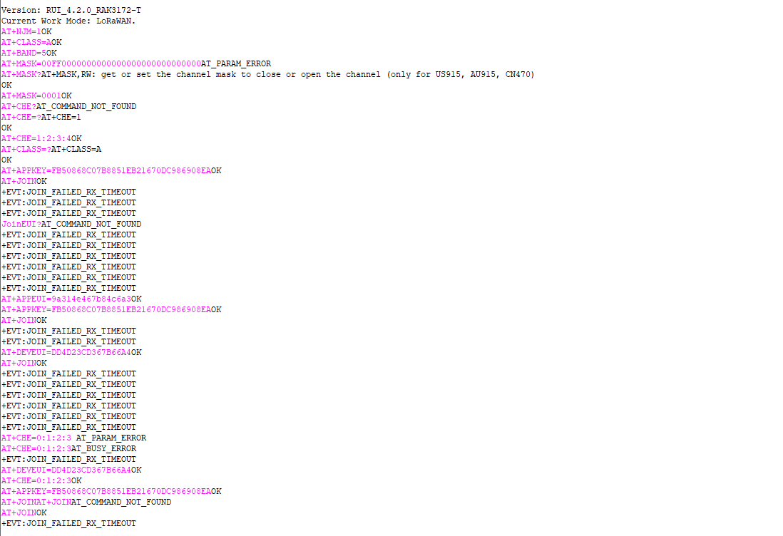 Result: Always +EVT:JOIN_FAILED_RX_TIMEOUT
