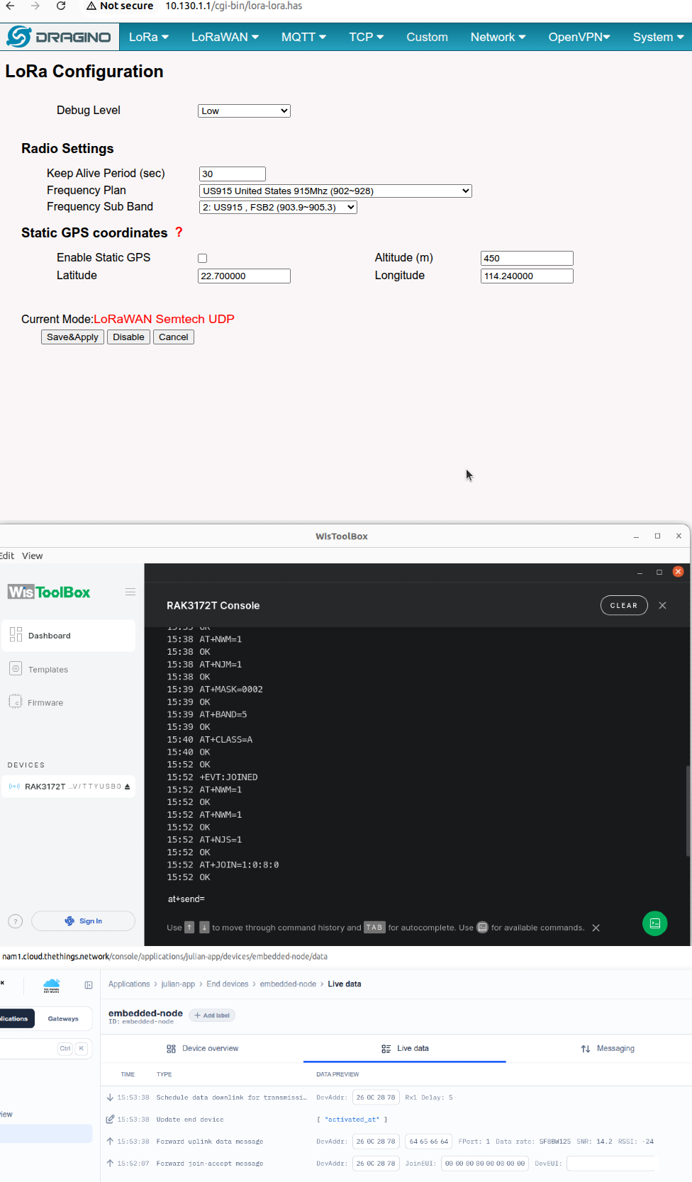 I’m working on a sports vest project using 15x RAK3172 modules (LoRaWAN OTAA mode) with a RAK5146-based gateway running ChirpStack v4 locally (Docker on Raspberry Pi CM4). The gateway is configured to US915_0 sub-band.