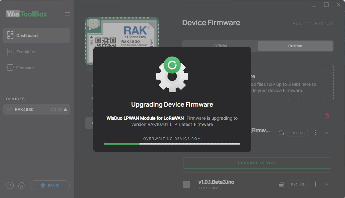 Moving back from RAK10701-Plus to RAK10701 is not yet supported by WisToolbox.