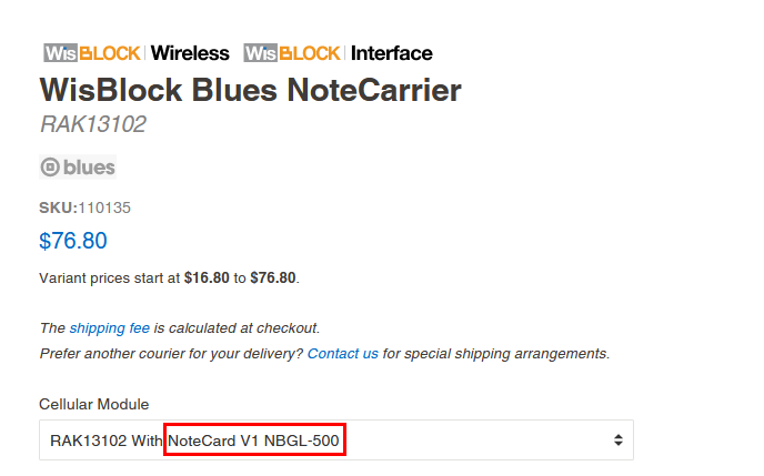 You can buy the RAK13102 with or without the Blues Notecard.
