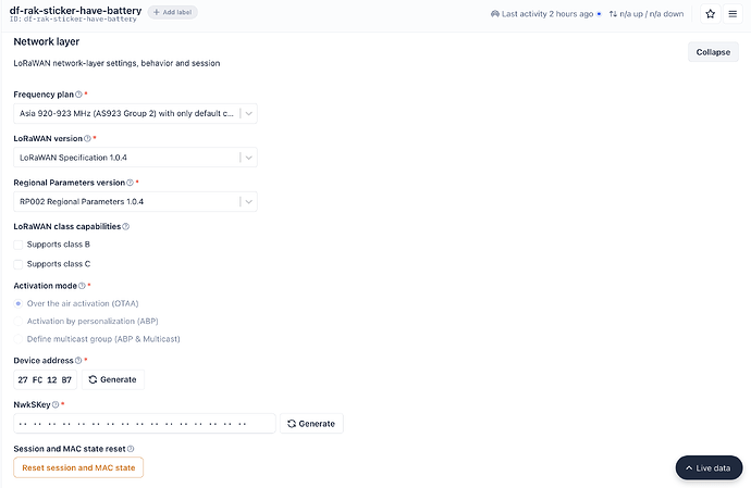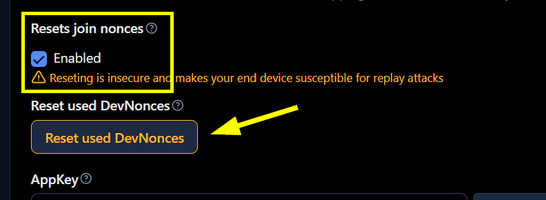 Confirm if the Resets join nonces are really checked then click again Reset used DevNonces.