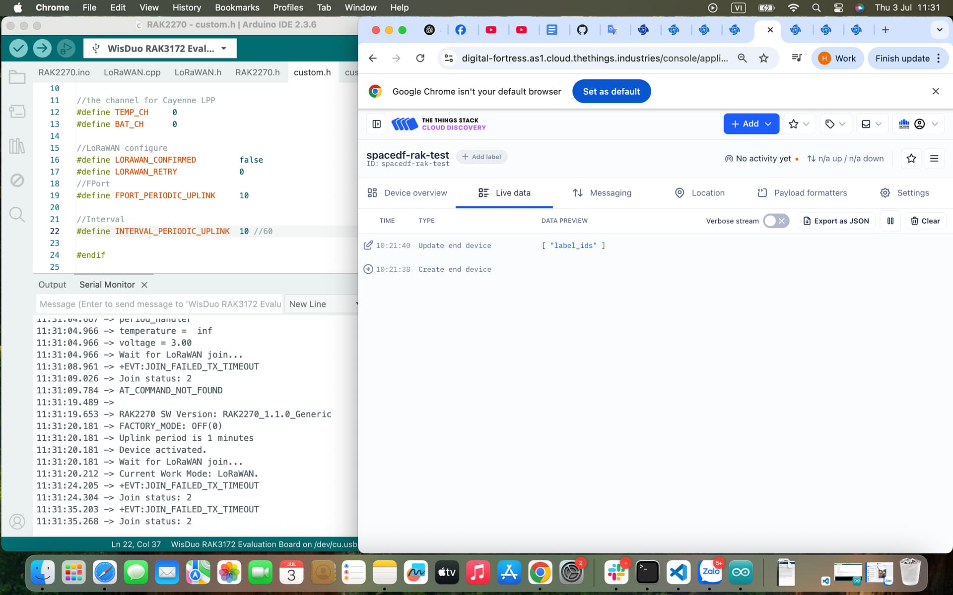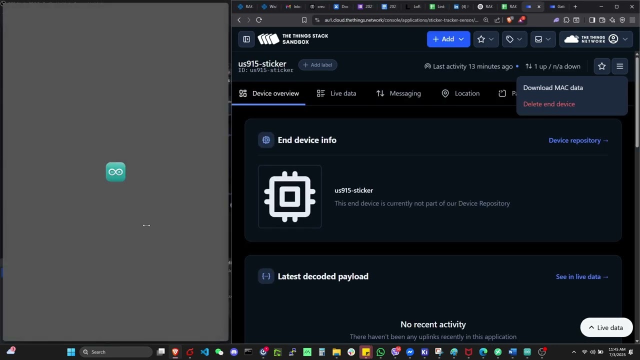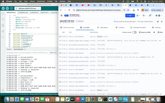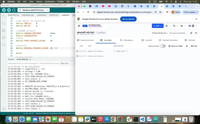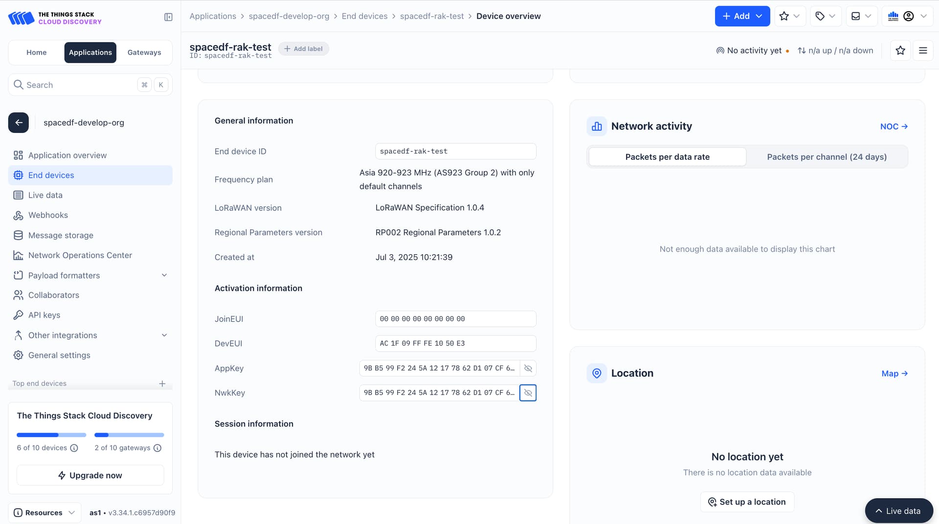 Now, my device can not send activation command to TTN. previously i tried deleting the application and recreating with the addresses: