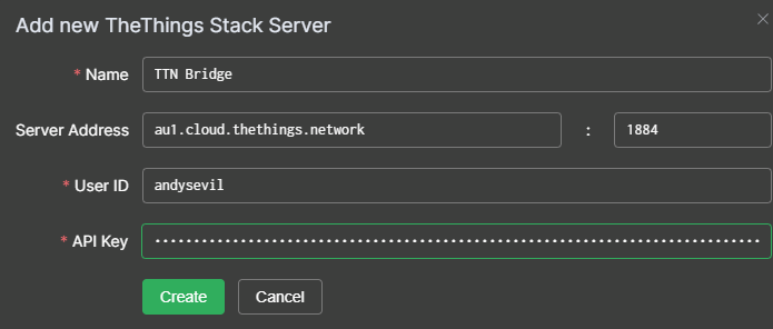 I’m trying to Create a TheThingsStack Server from IO.Box, but I can’t get it to create. The only thing I can think of is perhaps using the incorrect server address. I’m in AU, so using au1.cloud.thethings.network, could I get some advice on the port to use? I’ve tried 8884 & 1884 to no avail. I have set up my user ID and API Key as per the instructions, but simply won’t make the connection.