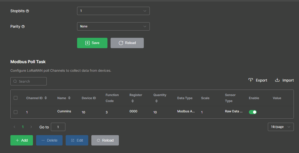 I have configured the RS485. I’m confident in the Poll Task as the Read Request matches the one previously on the motor connected with a RAK 7431.