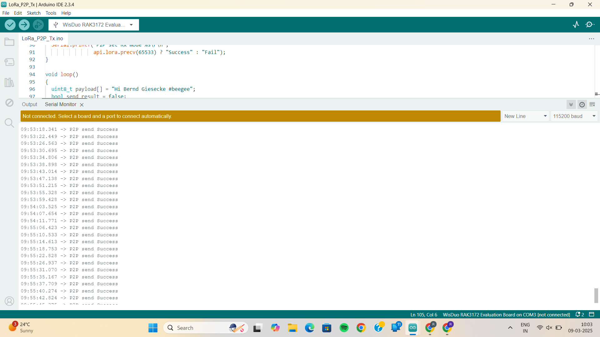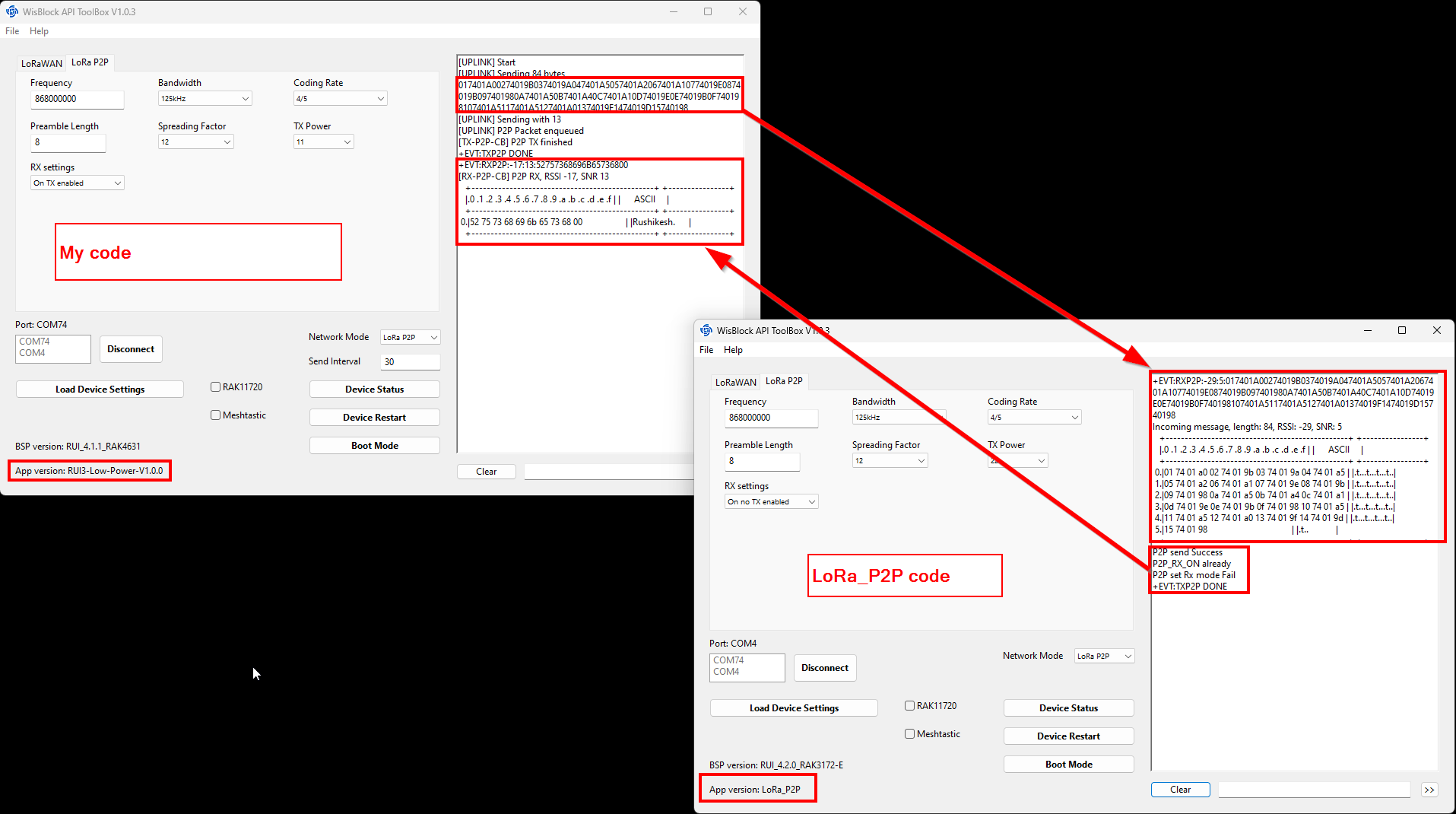 Provide source code if custom firmware is used or link to example if RAKwireless example code is used.