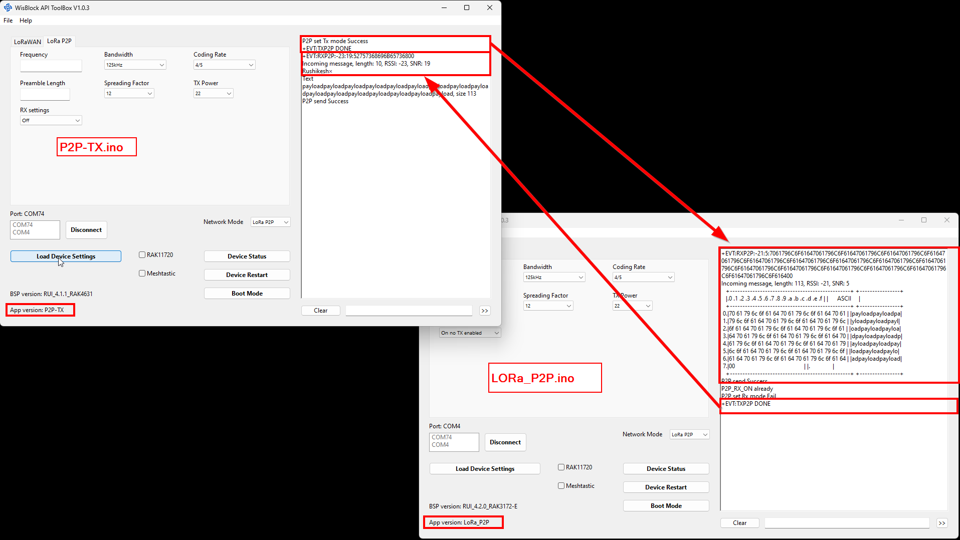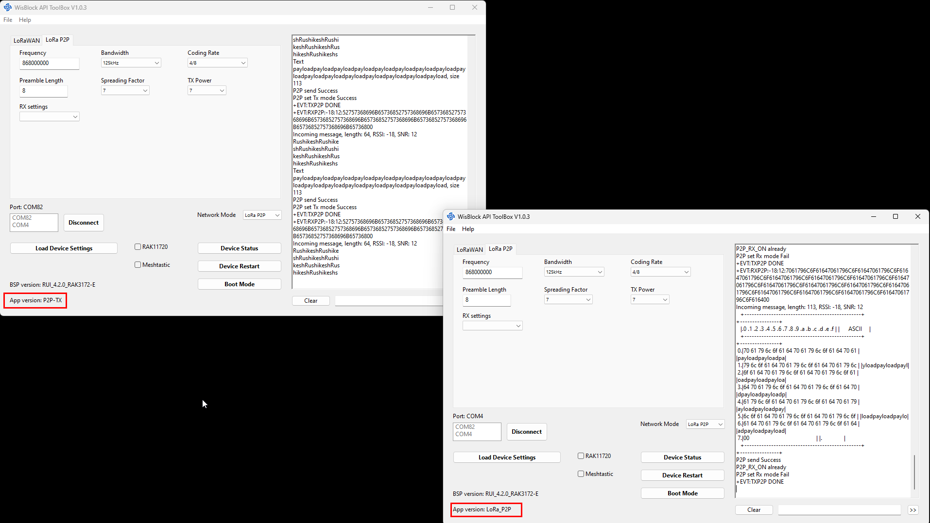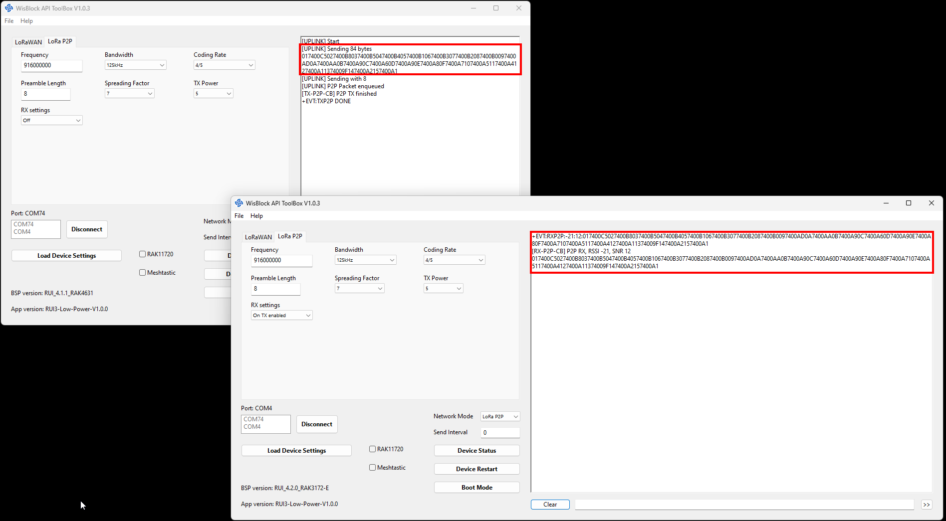 So there must be something else in your “real” code that is not in the examples you shared. They would not be able to communicate anyway with the different P2P settings.