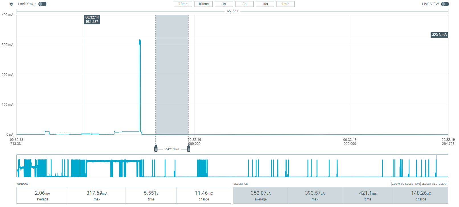 Hello Bernd, I use STM32CubeProgrammer to program it, and the code works and when I enter on debug mode it’s doing all the processes but when I measure the current it does not increase at the sending process, but the first time that it’s working the current increased up to 100mA.