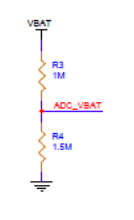 ADC for vbat is based on the battery connection of the WisBlock Base board. If you use the RAK3172 Evaluation Board, AT+BAT command will give the actual voltage of the battery attached on the evaluation board. If you are making your own board and want to use the vbat API, ADC_VBAT is connected to PB3/PIN_A0 and this is the voltage divider (based on base board).