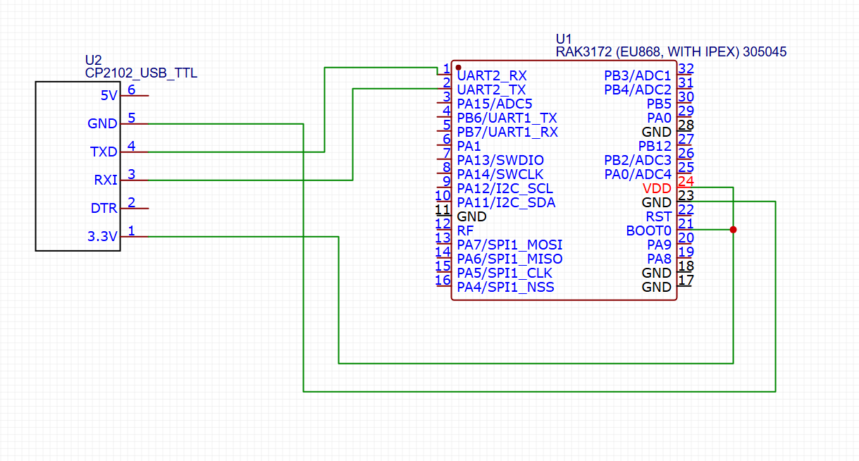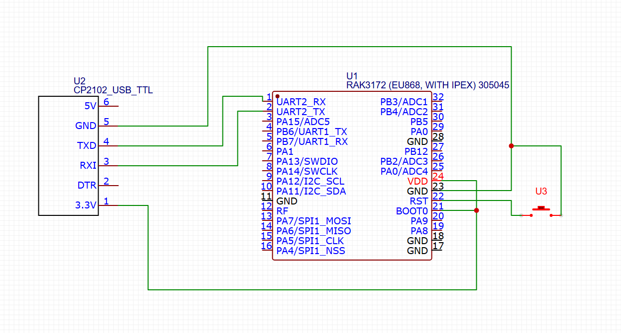 Otherwise the RAK3172 will be stuck in STM32 Bootloader mode and not start the application code.