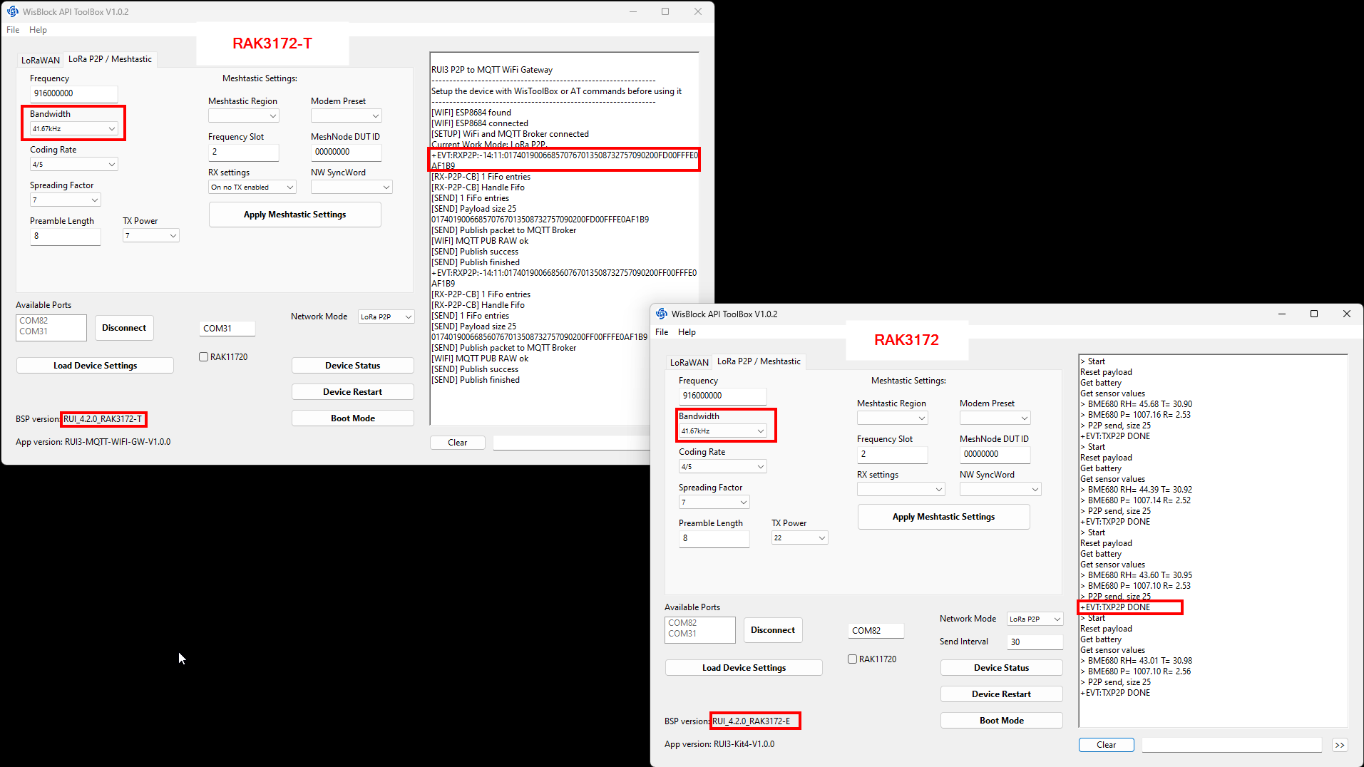 Provide source code if custom firmware is used or link to example if RAKwireless example code is used.