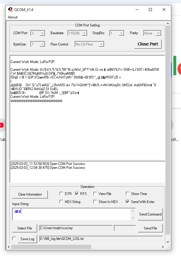 then we removed the boot pin from vcc to ground then pressed the reset button and connected with QCOM_V1.6 to check AT command response but “AT” command is not worked or not sent to the rak board