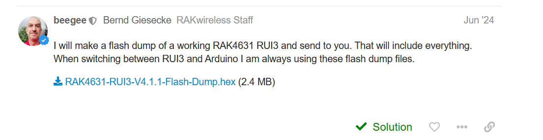 - Load the RAK4631-RUI3-V4.1.1-Flash-Dump.hex …and then? Do I expect it to respond to AT commands?