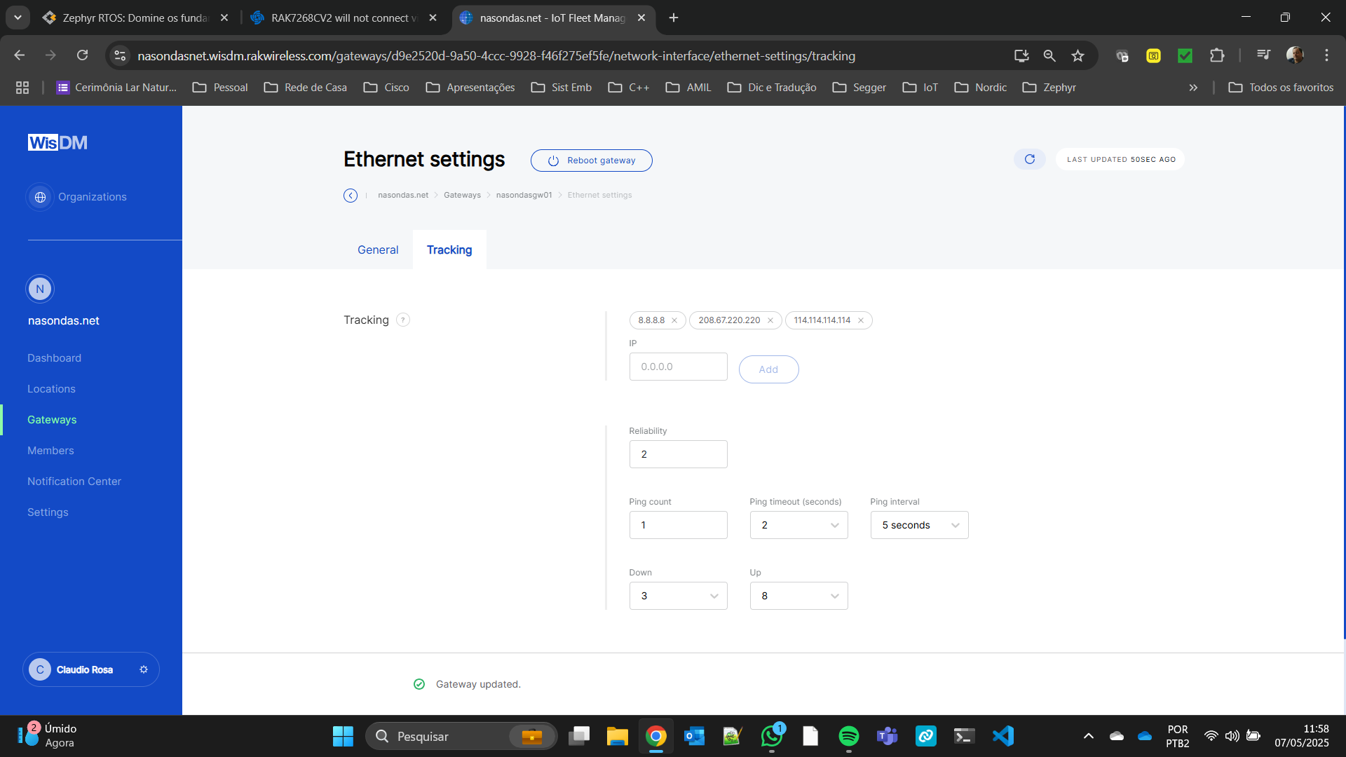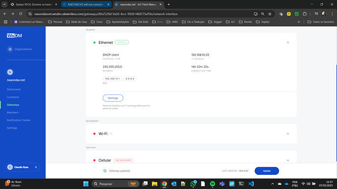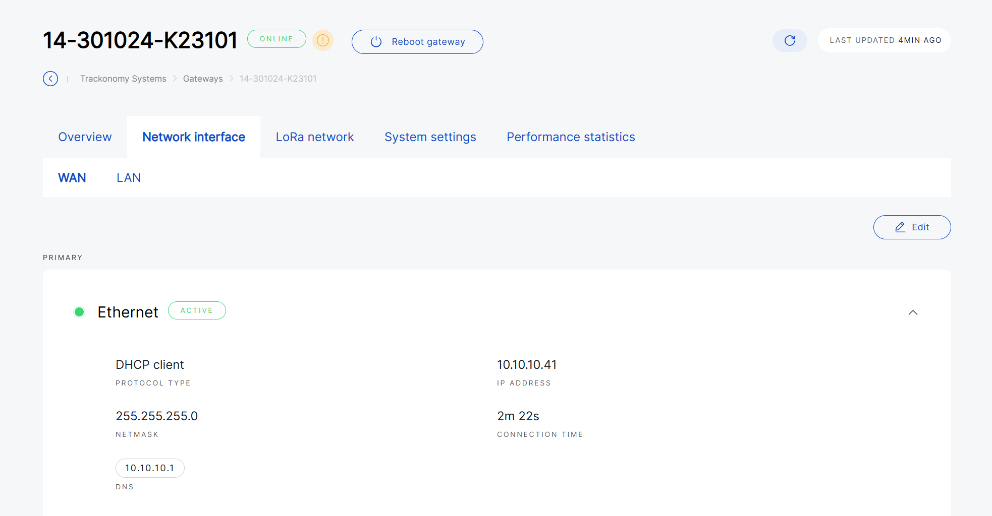 Below you can see my gateway (RAK7289CV2) configuration. Could you get the your Gateway ethernet port Tracking configuration?