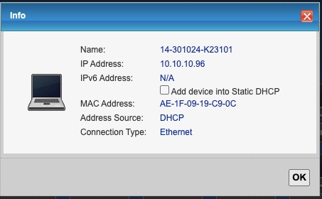 It’s clear from this that the DHCP server assigned the 10.10.10.96 address to the apcli interface, but the eth0 interface in state UNKNOWN is confusing to me, as the 7268 is drawing power from this interface and there are activity lights on the ethernet switch port