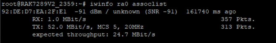 After the execution you can confirm with: iwinfo ra0 assoclist