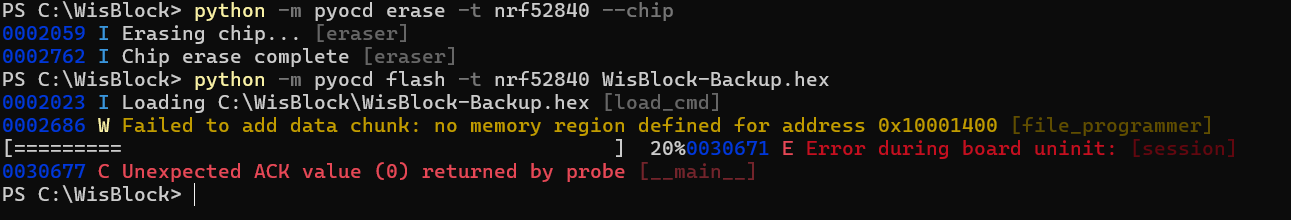 That sounds to me like a bad connection between the DAPlink and the device. I am getting sometimes errors while flashing a firmware with DAPlink and pyocd, not sure why. That’s why I prefer JLink. It works more stable.