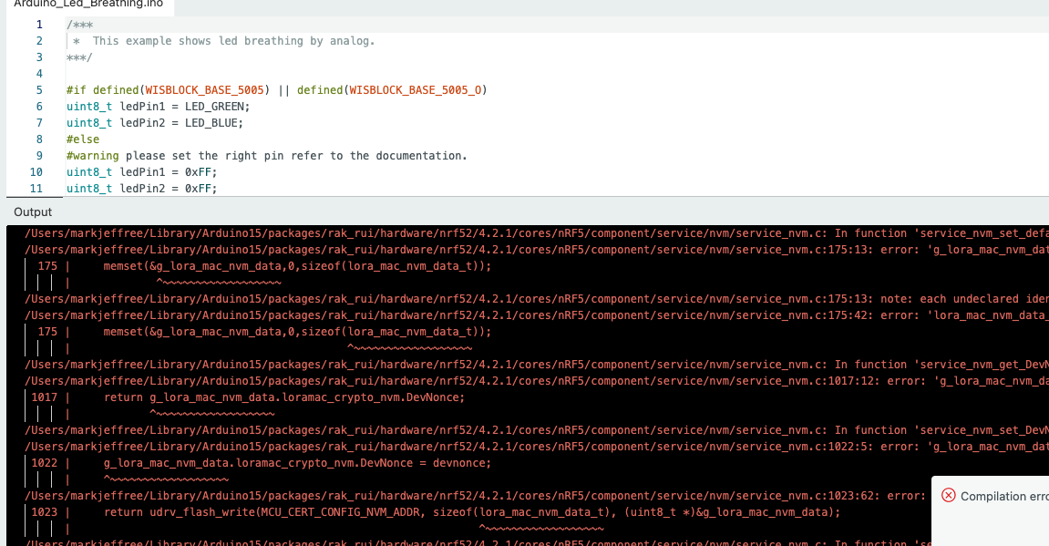 RAK4631, VScode+ArduinoCE extension, MacOS, BLE_Uart example code